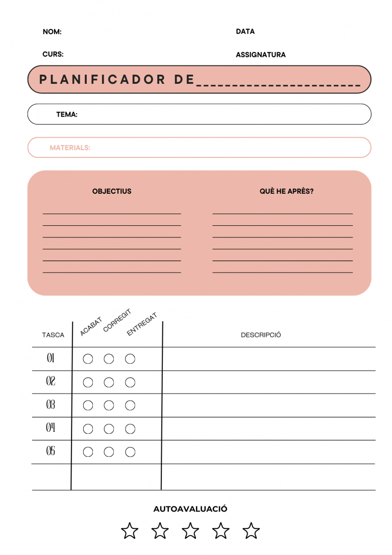L’organització i planificació de la feina és molt important, però pot resultar complex per a molts alumnes i no saber com, quan i de quina manera se’ls avalua, quan han d’entregar les tasques, etc. és bastant habitual.